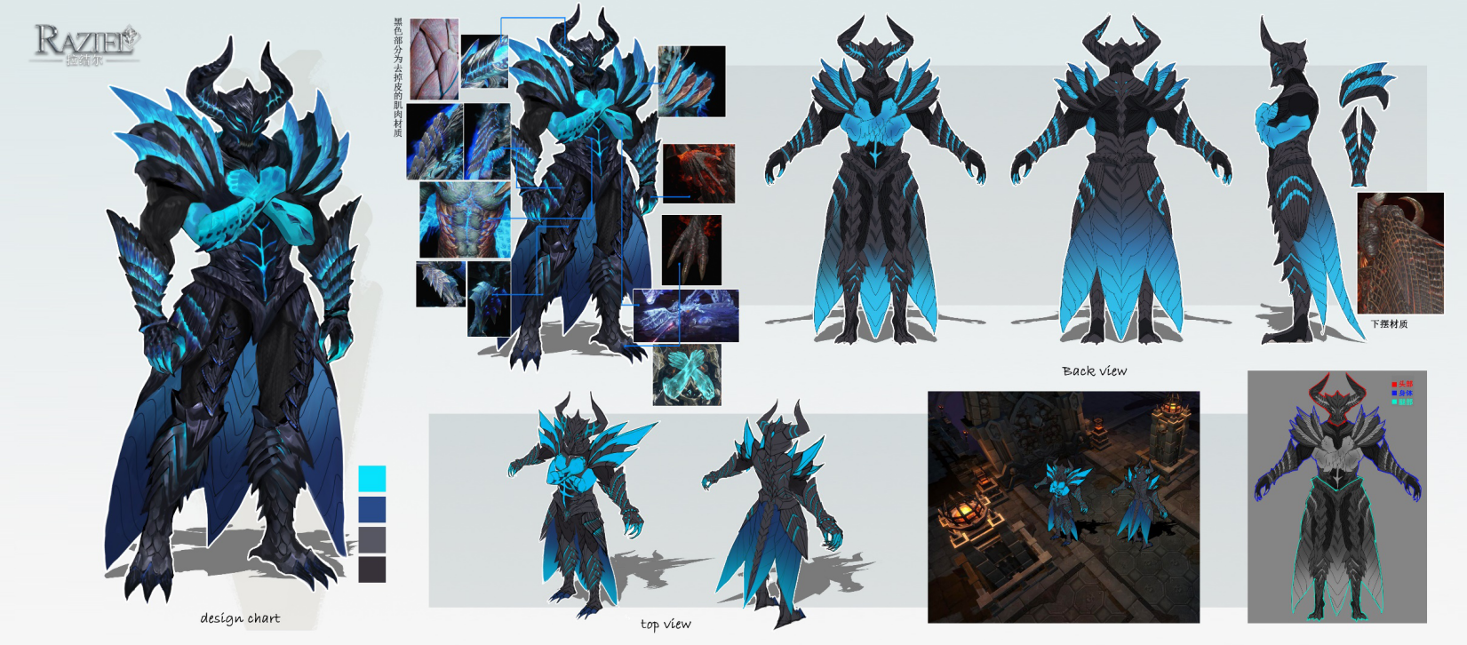 然后就是模型组的大神们根据原画构建游戏模型: