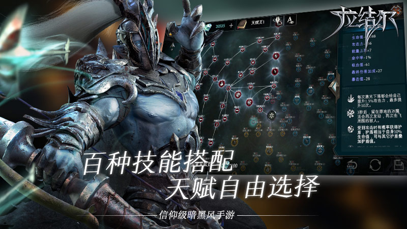 《拉结尔》中每个英雄都有4个技能,每个技能都有4个分支,总共带来256种不同的技能搭配,除了系统推荐的技能搭配外,玩家能根据自己的体验选择最适合自己的技能组合。除此之外,英雄每升一级能获得两点天赋点,《拉结尔》提供了上百种天赋属性供玩家自由发展,玩家结合自身选择的技能套路搭配天赋属性,打造属于自己的专属英雄。玩家可以根据不同的场景,选择合适的技能跟天赋搭配,更有效率地通关副本。