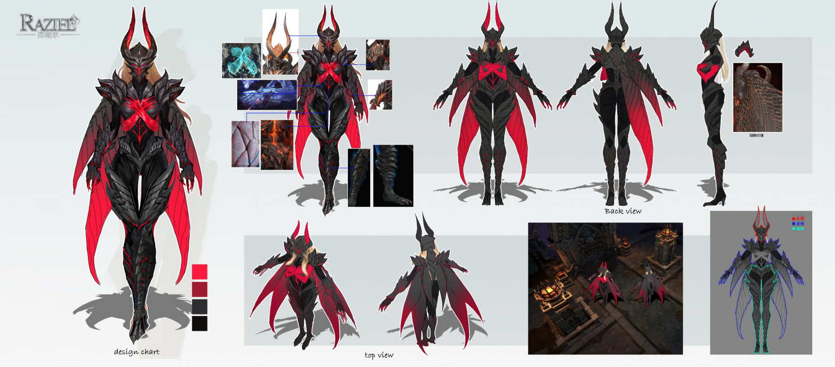 然后就是模型组的大神们根据原画构建游戏模型: